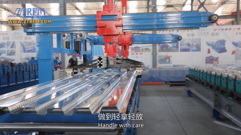 該設(shè)備能夠根據(jù)彩鋼瓦機、龍骨機、琉璃瓦機、樓承板機、CZU型鋼機等生產(chǎn)線的產(chǎn)出情況,自動進行物料的堆垛和分類,實現(xiàn)了生產(chǎn)線的高度自動化。