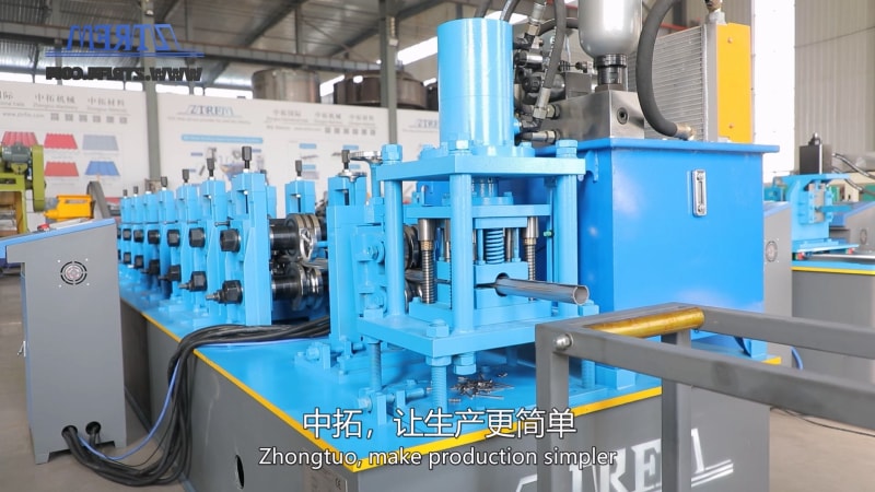 #中拓礦用錨桿機(jī) ,開(kāi)卷機(jī)加擋料,保證材料不會(huì)側(cè)倒,入料口加對(duì)輥,固定材料方向,也起到定向?qū)虻淖饔?,成型部分采用垂直輥和水平輥相結(jié)合的形式,四個(gè)角度同時(shí)成型設(shè)備雖然體積小,力道卻非常大,齒輪箱傳動(dòng),保持力道恒定,采用歐姆龍焊管機(jī)專用計(jì)數(shù)器,計(jì)數(shù)不打滑,西門子電器 遠(yuǎn)程運(yùn)維 數(shù)據(jù)采集 智能化分析。
