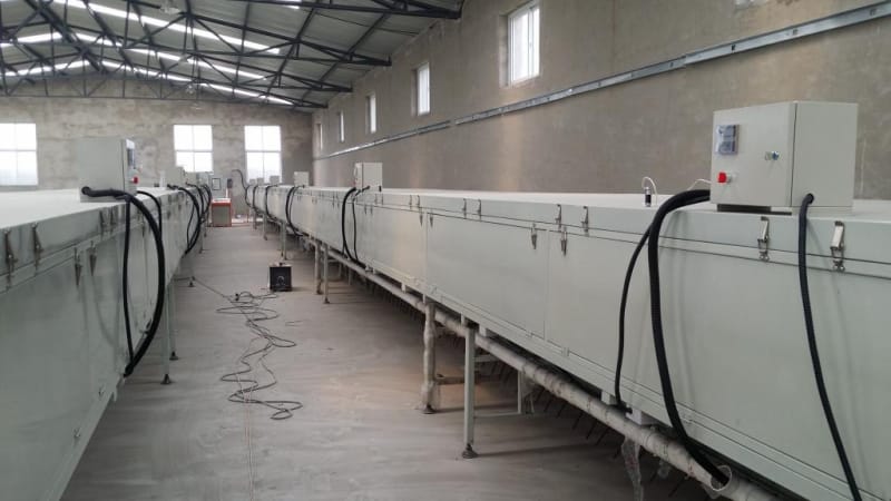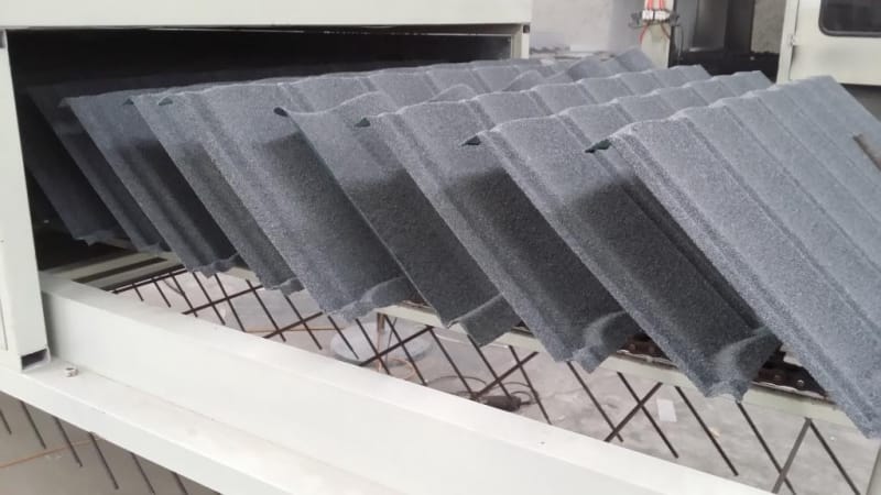 彩石瓦設(shè)備是以氣、電、機(jī)械為一體的,集噴膠、布沙、烘干等功能為一體的全自動(dòng)生產(chǎn)線。