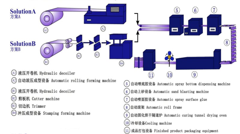 彩石瓦設(shè)備生產(chǎn)線版型圖: