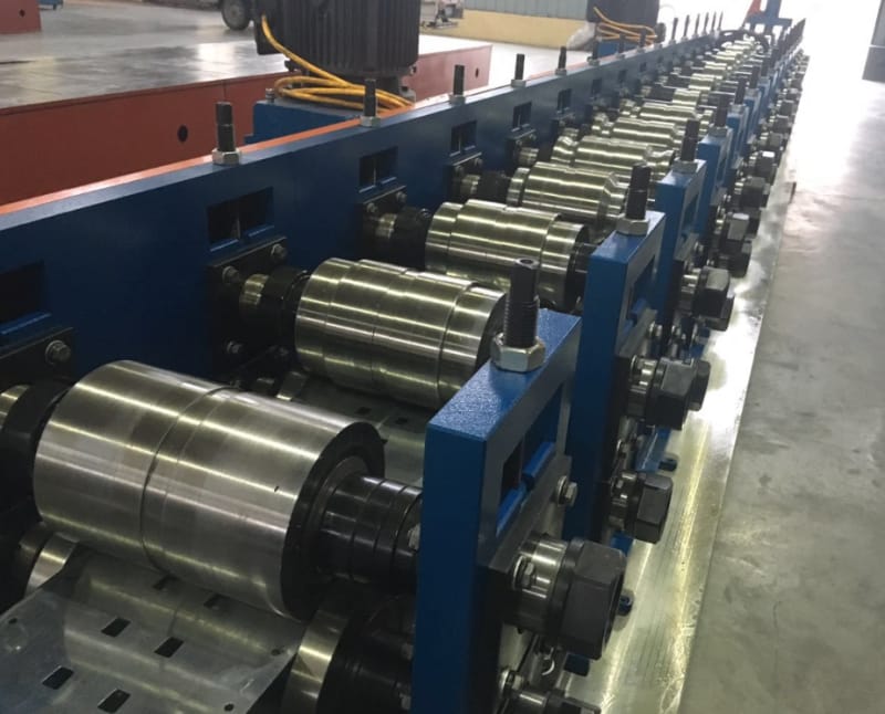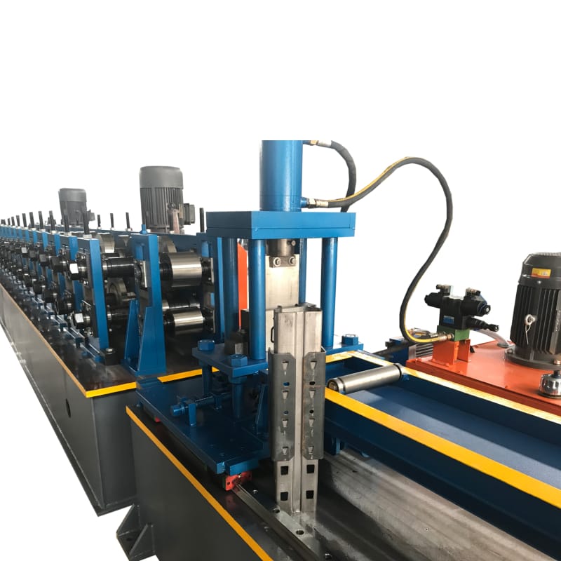 在生產(chǎn)過程中,對(duì)孔和槽進(jìn)行沖壓,以便將負(fù)載梁安裝到立式機(jī)架中。該套貨架立柱系統(tǒng)設(shè)備包含整套立柱生產(chǎn)線,包括開卷機(jī)、液壓沖孔機(jī)、貨架立柱成型機(jī)、收料臺(tái)等部分,可以通過參數(shù)設(shè)置,生產(chǎn)不同尺寸的貨架立柱。