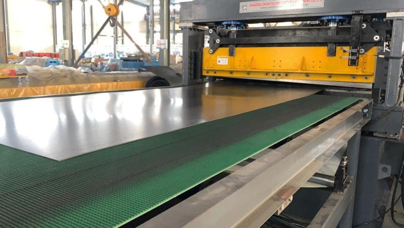 本生產(chǎn)線用于將金屬卷材切片,切割成你需要長度的板。通??捎糜诓讳P鋼,鋁(鋁合金),碳鋼等材料的卷材。具有全自動(dòng)生產(chǎn),切割板材平整,沒有毛刺的特點(diǎn)。