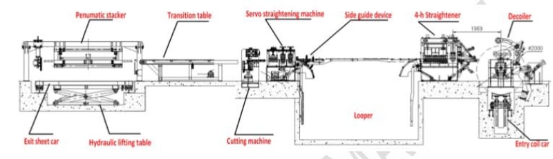 使用范圍 本生產(chǎn)線用于厚度(0.28-4.0㎜);寬度500-1500㎜的鋼卷板的開卷校平、定尺、剪切。