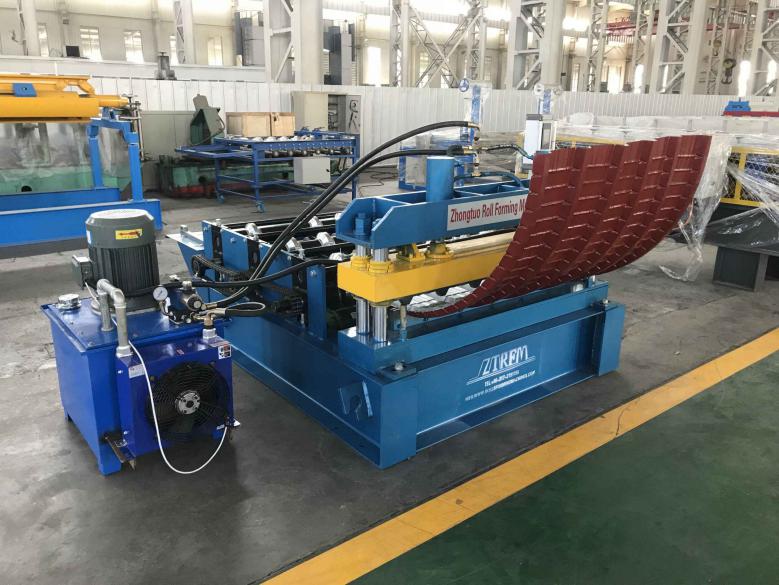 金屬屋面瓦液壓打拱機的作用主要是將成型好的屋面瓦打拱成一定弧度以便用于有圓弧形狀的屋頂,該設(shè)備可以根據(jù)客戶的要求生產(chǎn)不同的弧度,方便快捷。